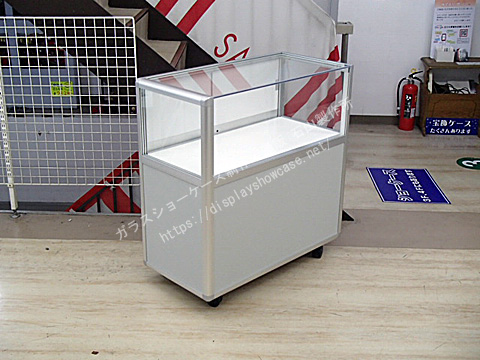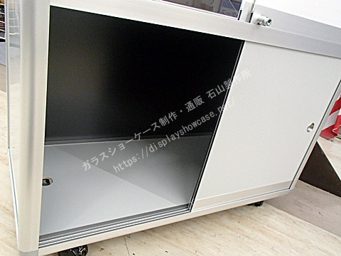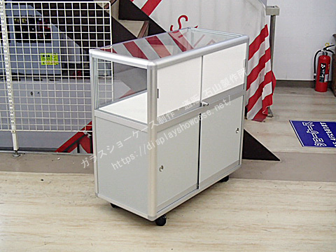 日本アルミ  ゼガロ  カウンターケース  アルミ  シルバー  後ろ引き戸  背面ボード  キャスター プッシュロック 収納 天枠フレームレス