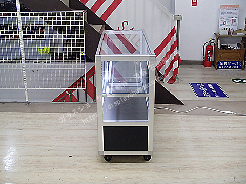 ハヤノ エクシード 平ケース アルミ シルバー 棚1枚 背面ガラス キャスター プッシュロック 収納 スリムランプ ランプ1灯(保証なし)
