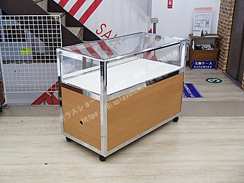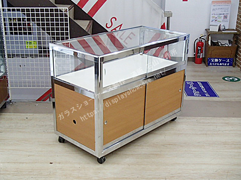 日本アルミ  アルシャイン  カウンターケース  アルミ  クローム  背面ガラス  キャスター 収納