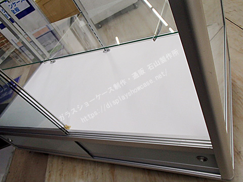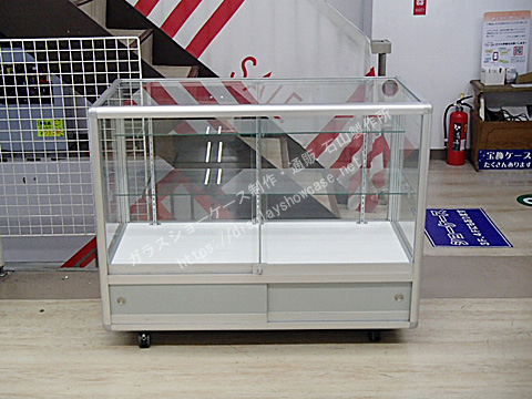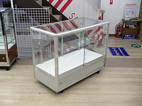 丸みのあるしっかりとしたフレームが特徴のアルミガラスショーケースのリサイクルです。