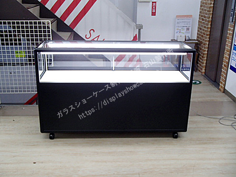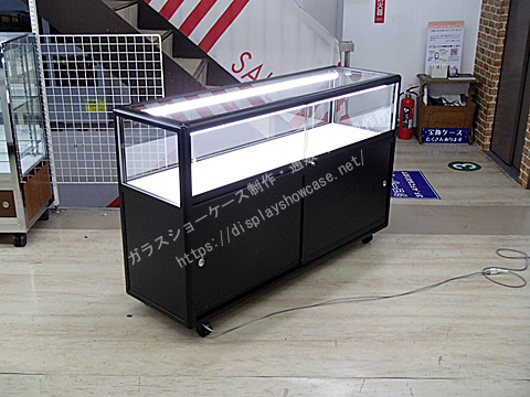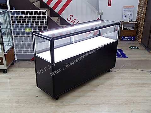 UACJ(旧 日本アルミ)  ゼガロ  カウンターケース  アルミ  ブラック  背面ガラス  キャスター プッシュロック 収納  LED照明  ランプ2灯(保証なし)