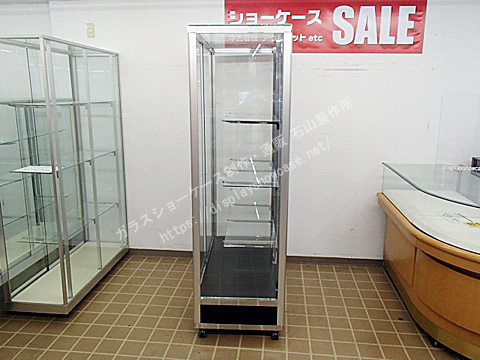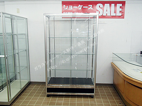 日本アルミ アルシャイン 立ケース アルミ コンビ シルバー+クローム 棚3枚 前引き戸 背面ガラス キャスター