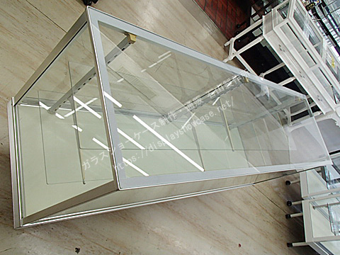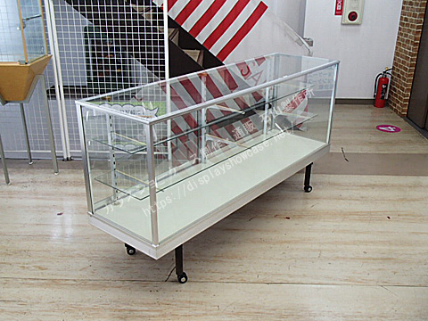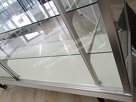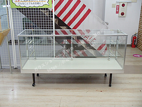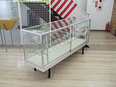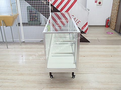 KKK  スタンダード  平ケース  アルミ  シルバー  棚2枚  後ろ引き戸  背面ガラス  キャスター  棚板追加不可