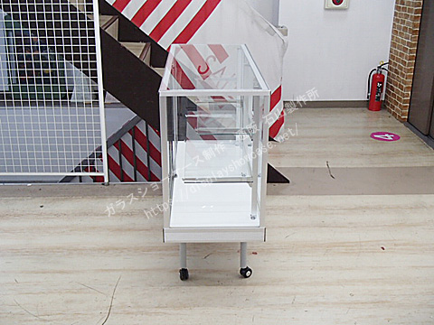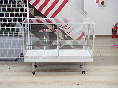 日本アルミ  スタンダード  平ケース  アルミ  シルバー  棚2枚  前引き戸  背面ガラス  キャスター