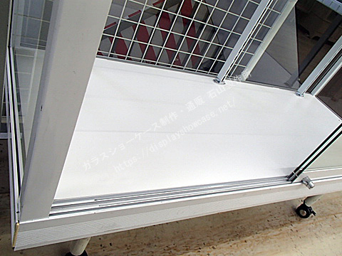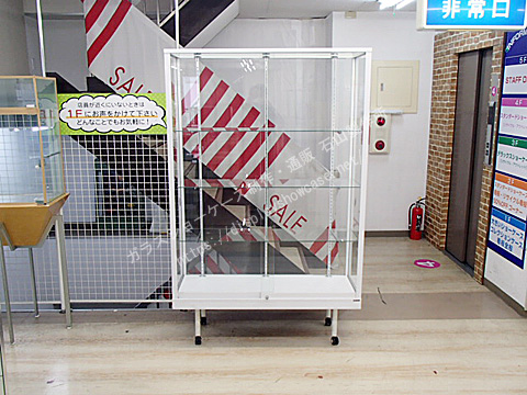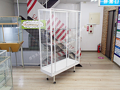 日本アルミ  スタンダード  立ケース  アルミ  ホワイト  棚3枚  前引き戸  背面ガラス  キャスター プッシュロック