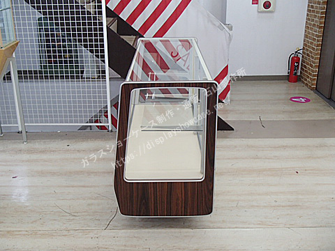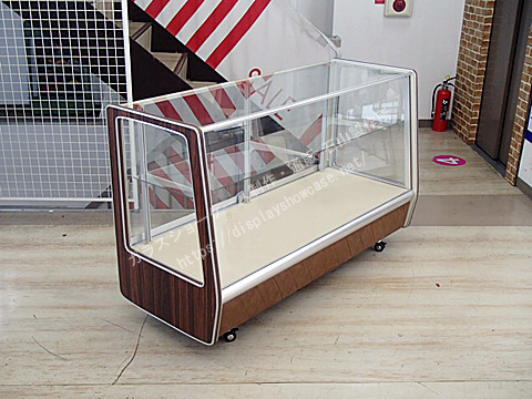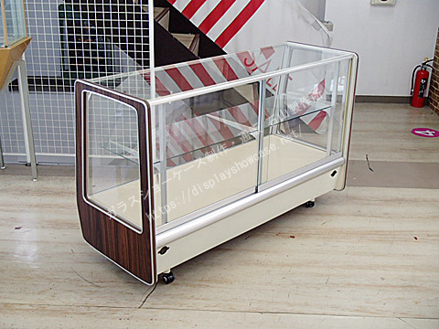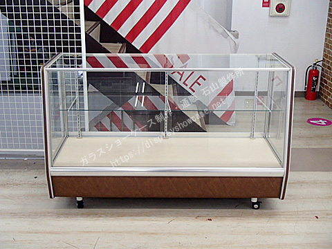 カスタム 平ケース シルバー 棚1枚 後ろ引き戸 背面ガラス キャスター 棚板追加不可